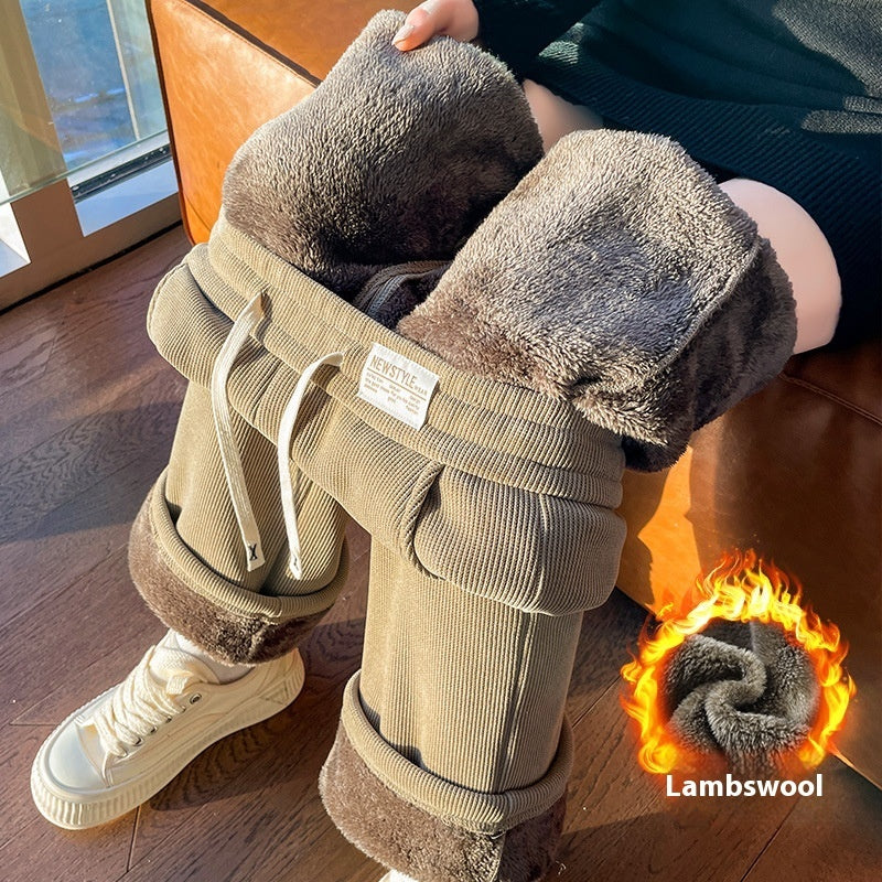 Chenille Fleece-lined Thickening Wide Leg Pants Women's Autumn And Winter
